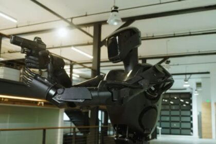 A máquina que anda entre nós Um robô humanoide de 1,80 m…